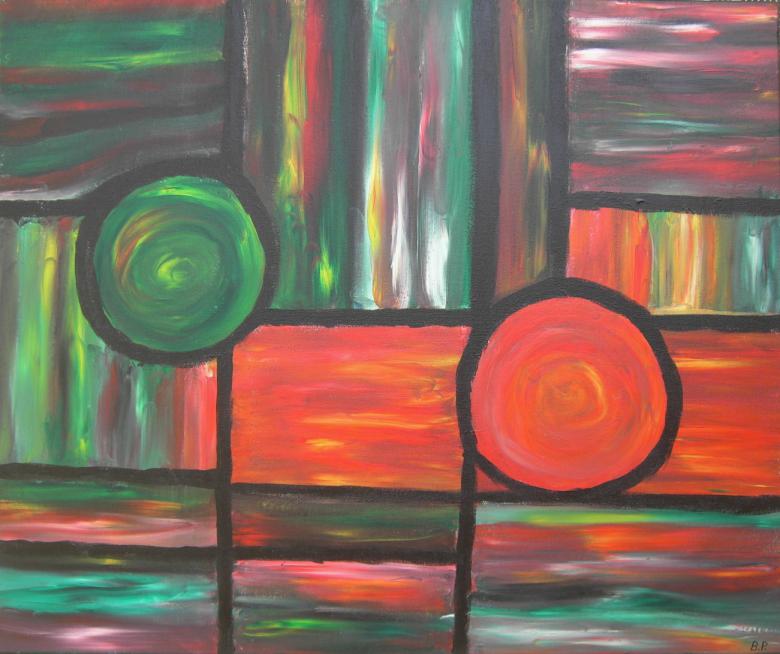Rollende Kugeln Acryl auf Leinwand 50x60cm 2008