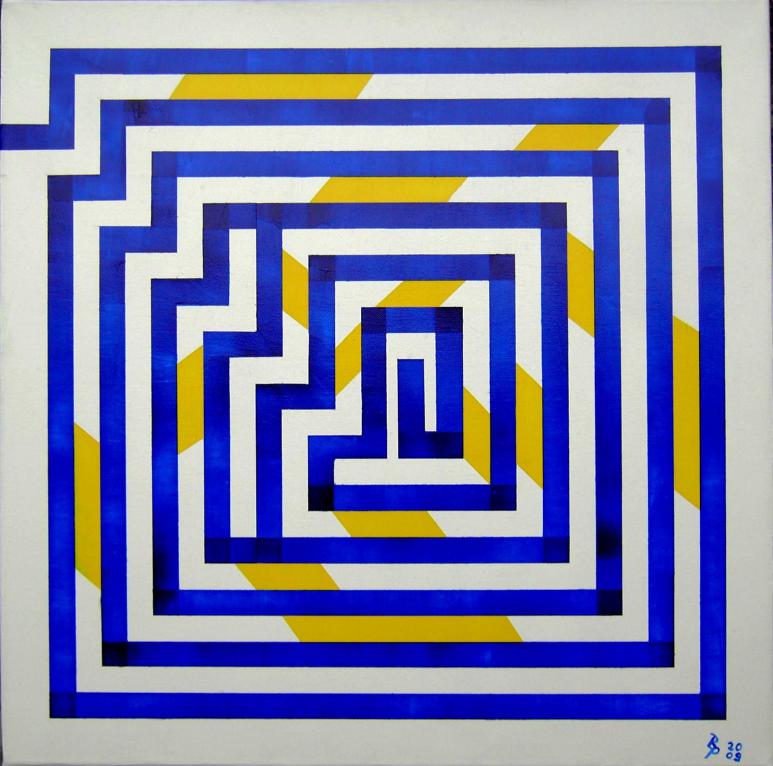 Blaue Linie ins Zentrum Acryl auf Leinwand 60x60cm 2009