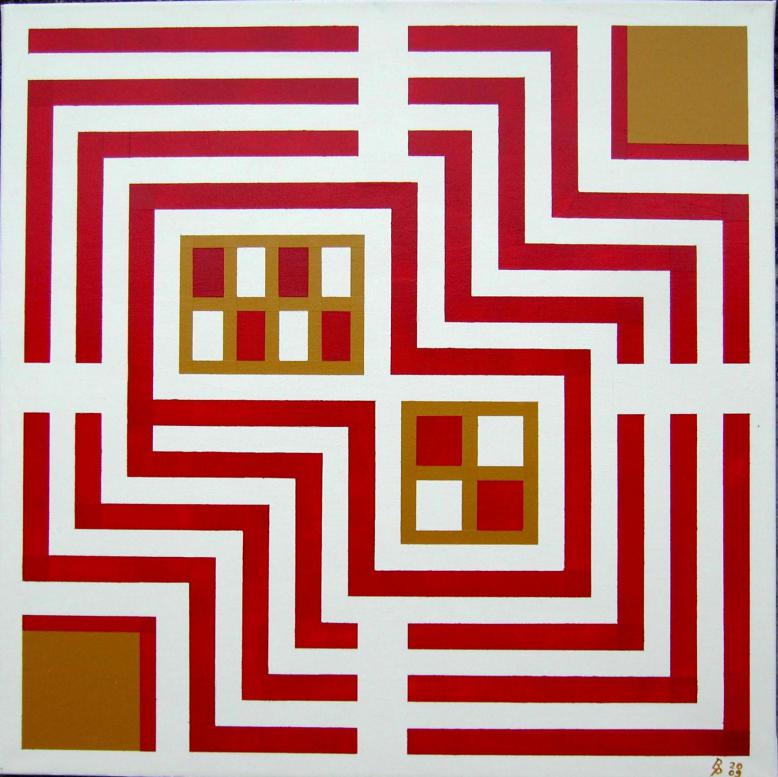Rote Linie ins Zentrum Acryl auf Leinwand 60x60cm 2009