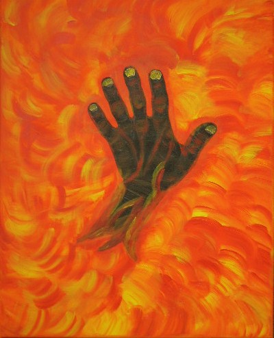 Hand im Feuer Acryl auf Leinwand 40x50cm 2007