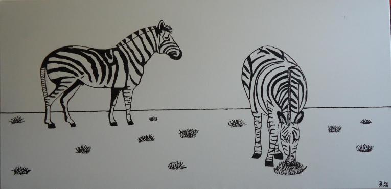 Zebras Wachs auf Leinwand 40x80cm 2012